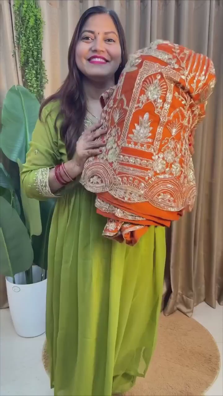 Burnt Orange Soft Net Bridal Lehenga with Coding Sequins Embroidery